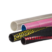 La gomma e alcune materie plastiche, in molti casi, offrono prestazioni migliori e minore usura rispetto, ad esempio, all’acciaio. Perché? L’energia cinetica della particella solida, al momento dell’impatto con la superficie in gomma, viene trasformata in energia di deformazione elastica della superficie stessa e in gran parte restituita alla particella tramite il rimbalzo, senza danneggiare la superficie in gomma. Per questo motivo, spesso si rivestono con gomma i gomiti delle tubazioni in acciaio e i raccordi metallici di alcuni tubi vengono montati sulla superficie esterna del tubo, invece di essere inseriti all’interno. Materiali tipici utilizzati per lo strato interno dei tubi per sostanze solide: gomma naturale NR, miscela di gomma naturale e sintetica NR/SBR, e tra le materie plastiche il poliuretano PU.